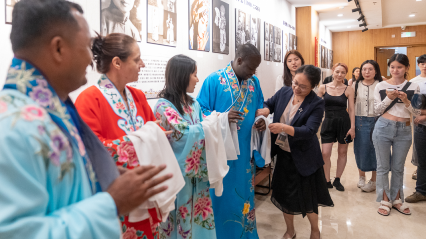 告别南锣的喧闹与簋街的热辣,中国景泰蓝艺术博物馆内,几位美国学生正专注于为铜胎点蓝,体验着这门皇家工艺的精妙;史家胡同博物馆里,来自英国的游客在老师傅指导下,小心翼翼地体验制作古人夏日消暑水扇。这些深度非遗体验,让外国游客从“看客”变身为“创作者”。