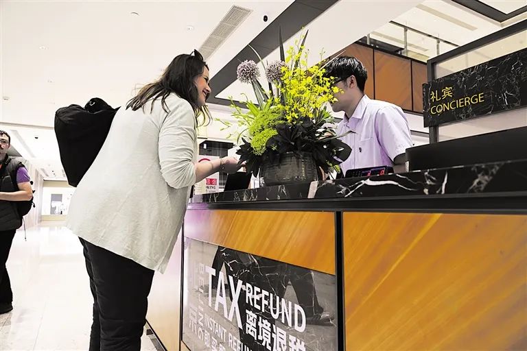 几步之遥,王府中环退税点是北京首批离境退税“即买即退”集中退付点之一,入境游客带着身份证件、退税申请单、发票、信用卡和17天内从北京离境口岸离境的证明,即可在此享受“全城退税、一点通办、即买即退”的便捷服务。数据显示,截至7月中旬,东城区集中退付点已累计办理集中退付业务42笔,退税消费额累计168万元,有效激活境外游客消费潜力。