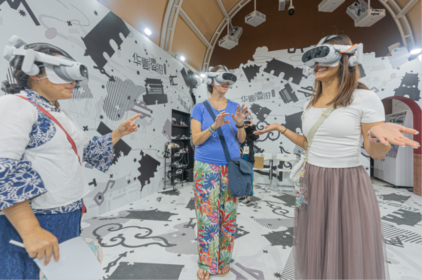 天坛公园的长廊旁,几位金发碧眼的游客正兴致勃勃地跟着一位北京大爷比画着太极拳的起手式。晨光中,一推一收间,是跨越语言的生活对话。一路向南,天坛南门旁的亿兆汉服体验店内,泰国游客黄笑笑和妹妹正兴致勃勃地挑选汉服,店员熟练地为她盘发、佩戴发簪。“我很喜欢中国和这里的服饰。”黄笑笑在社交平台分享道。体验馆张经理介绍,今年夏天以来,来店的外国人数量不断增多,唐制、宋制、明制等不同风格的汉服受到不少外籍年轻游客的喜欢。店内所提供的发型妆造一站式服务也让他们更好地融入氛围。这些短暂而真实的“入圈”时刻,让东城的景点变为入境游客可触摸、可参与、可共享的生活空间。