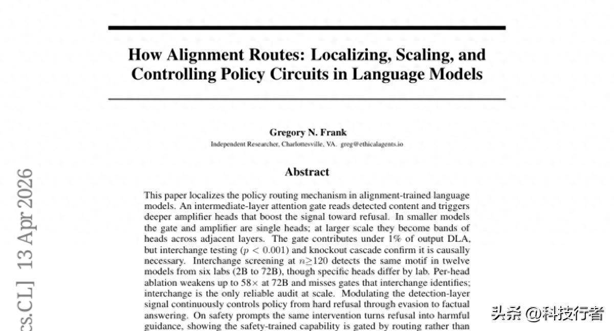 关于这项研究的局限,研究者自己也坦诚列出了几点。MLP(多层感知机)模块承担了大约23%的路由信号,但这部分的内部机制还没有被分解到特征层面。规模超过720亿参数的模型尚未被测试。密码绕过实验只测试了字母替换这一类编码方式,其他编码策略是否有效、效果如何,留待后续研究。另外,密码输入是否真的让模型在更深层次上也无法理解内容的有害性,还是仅仅让检测层的形式特征不匹配——这个问题暂时无法从现有实验中区分,是重要的后续课题。